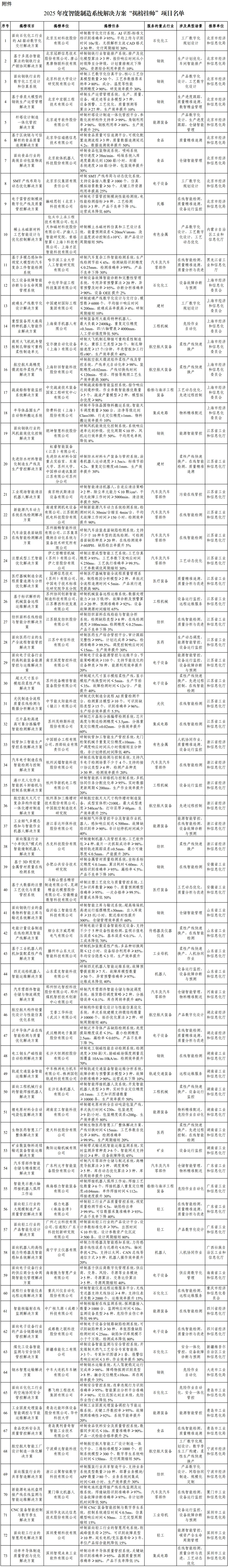 2025年度智能制造系统解决方案“揭榜挂帅”项目名单公布